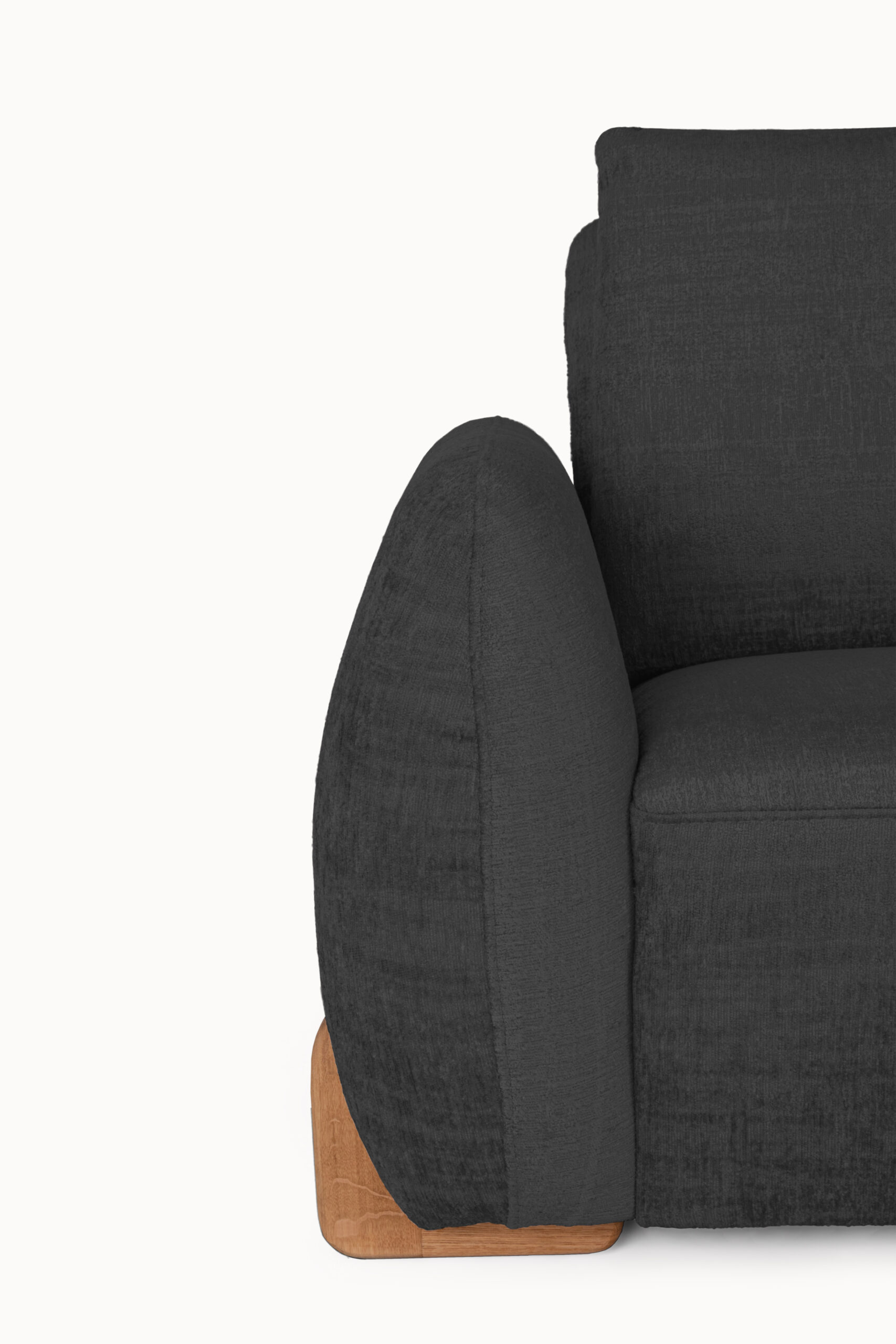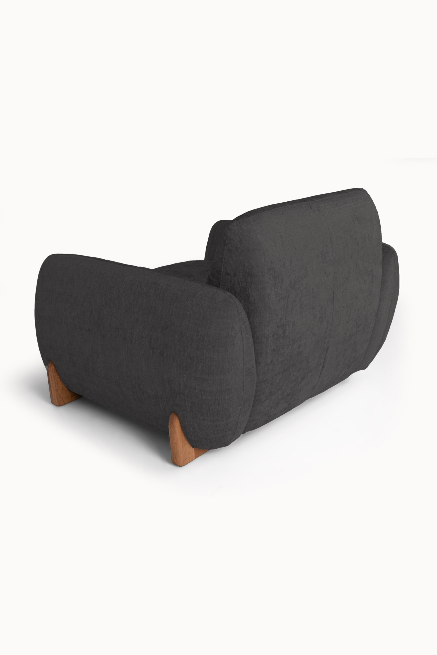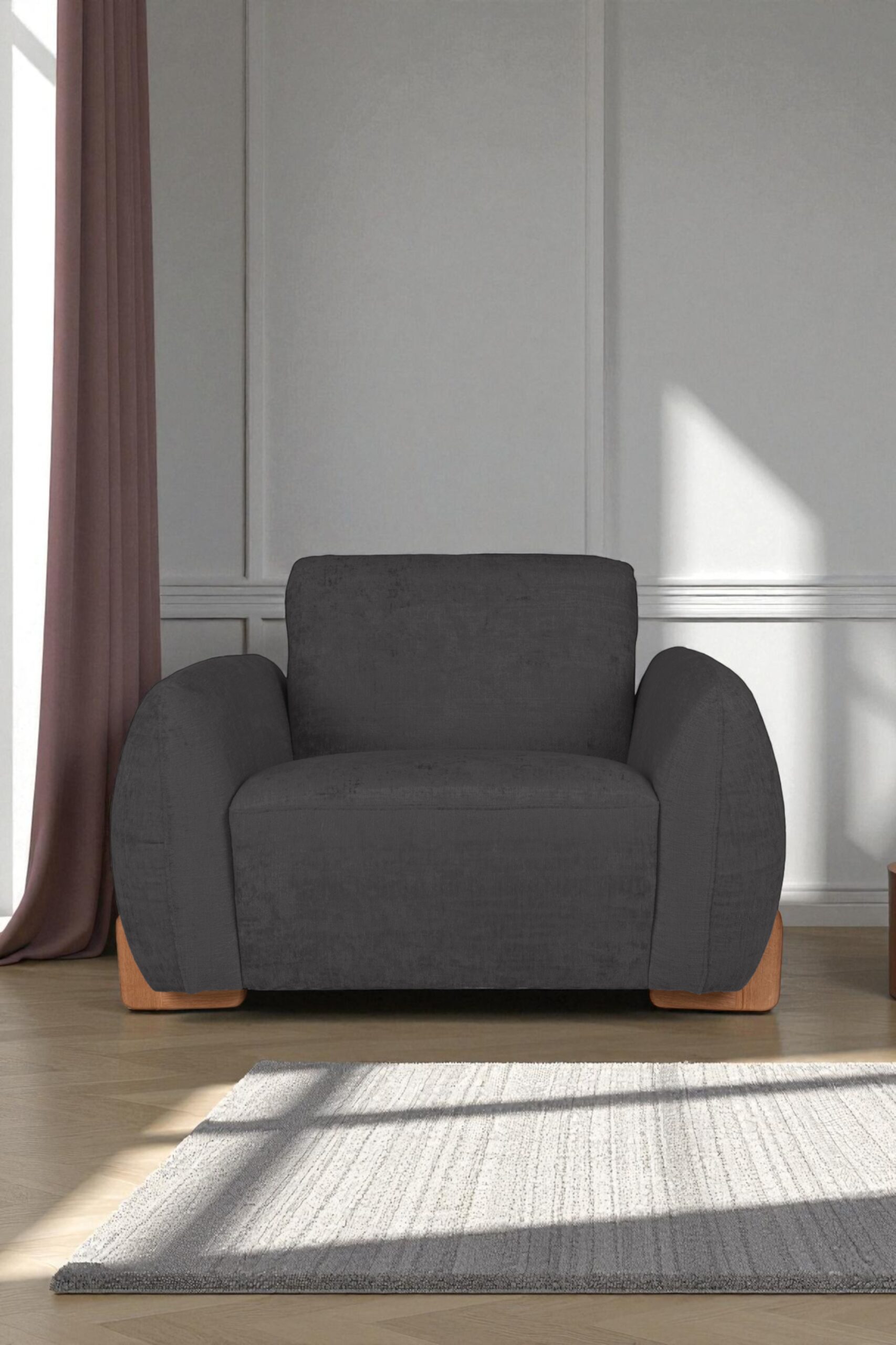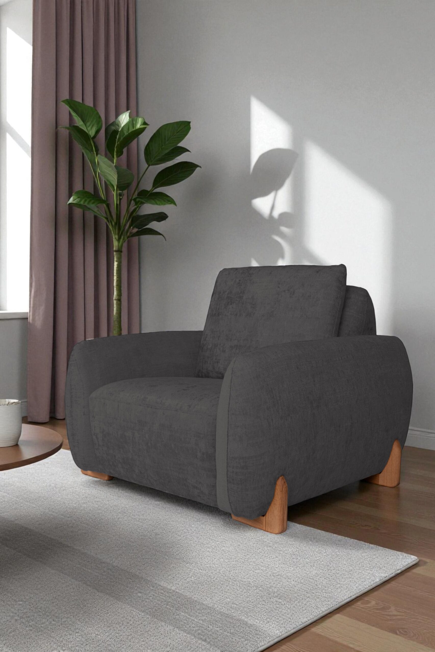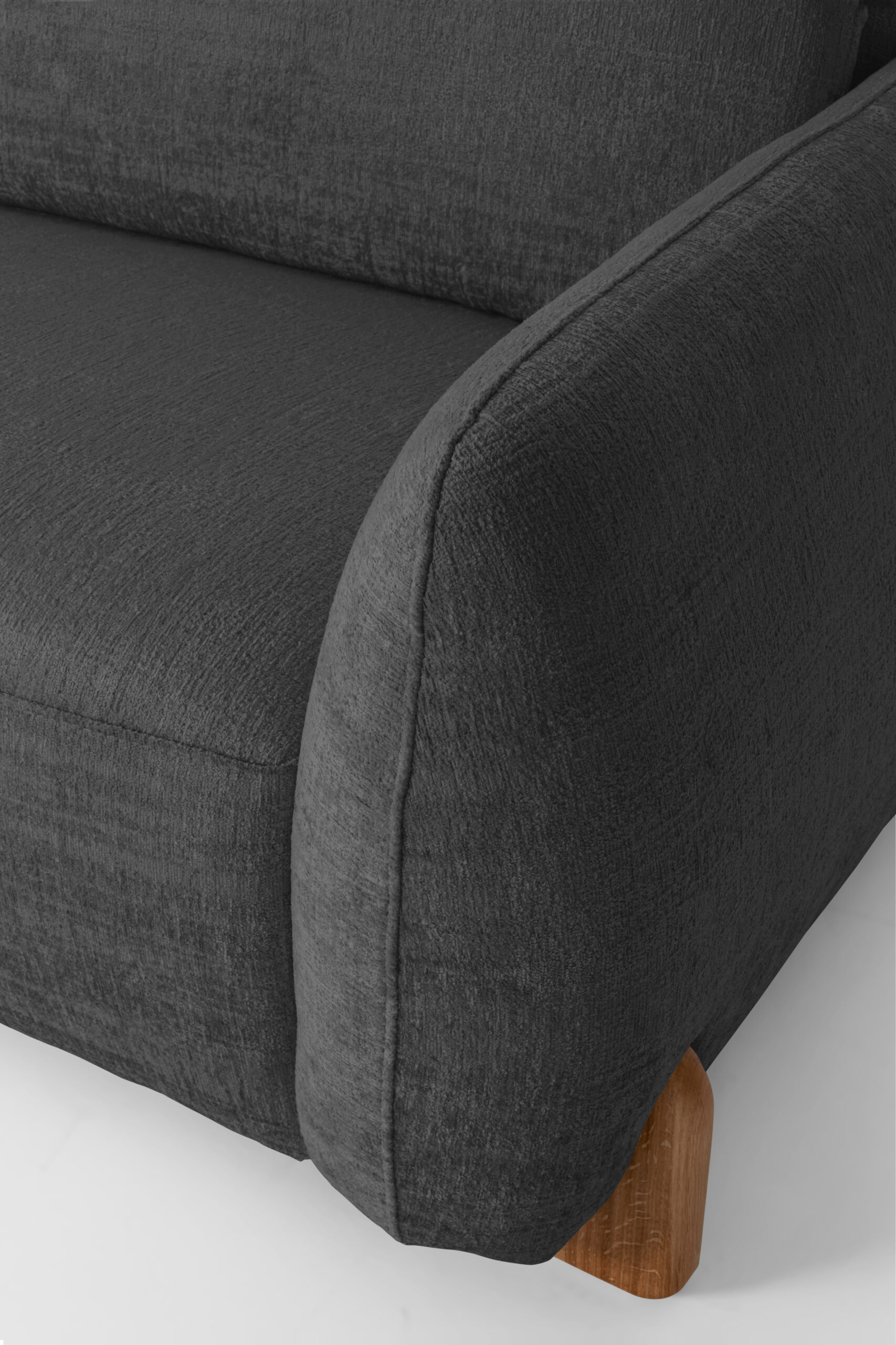 Szeroka poducha na oparciu i głębokie siedzisko zachęcają do odpoczynku, a elastyczna pianka o wysokiej gęstości gwarantuje trwały komfort na co dzień. Drewniane nóżki w ciepłym odcieniu dodają lekkości i elegancji, podkreślając naturalny charakter mebla. Obicie wykonano z tkaniny przyjaznej zwierzętom – odpornej na zaciągnięcia i łatwej w czyszczeniu, o delikatnym połysku i miękkiej, aksamitnej strukturze.