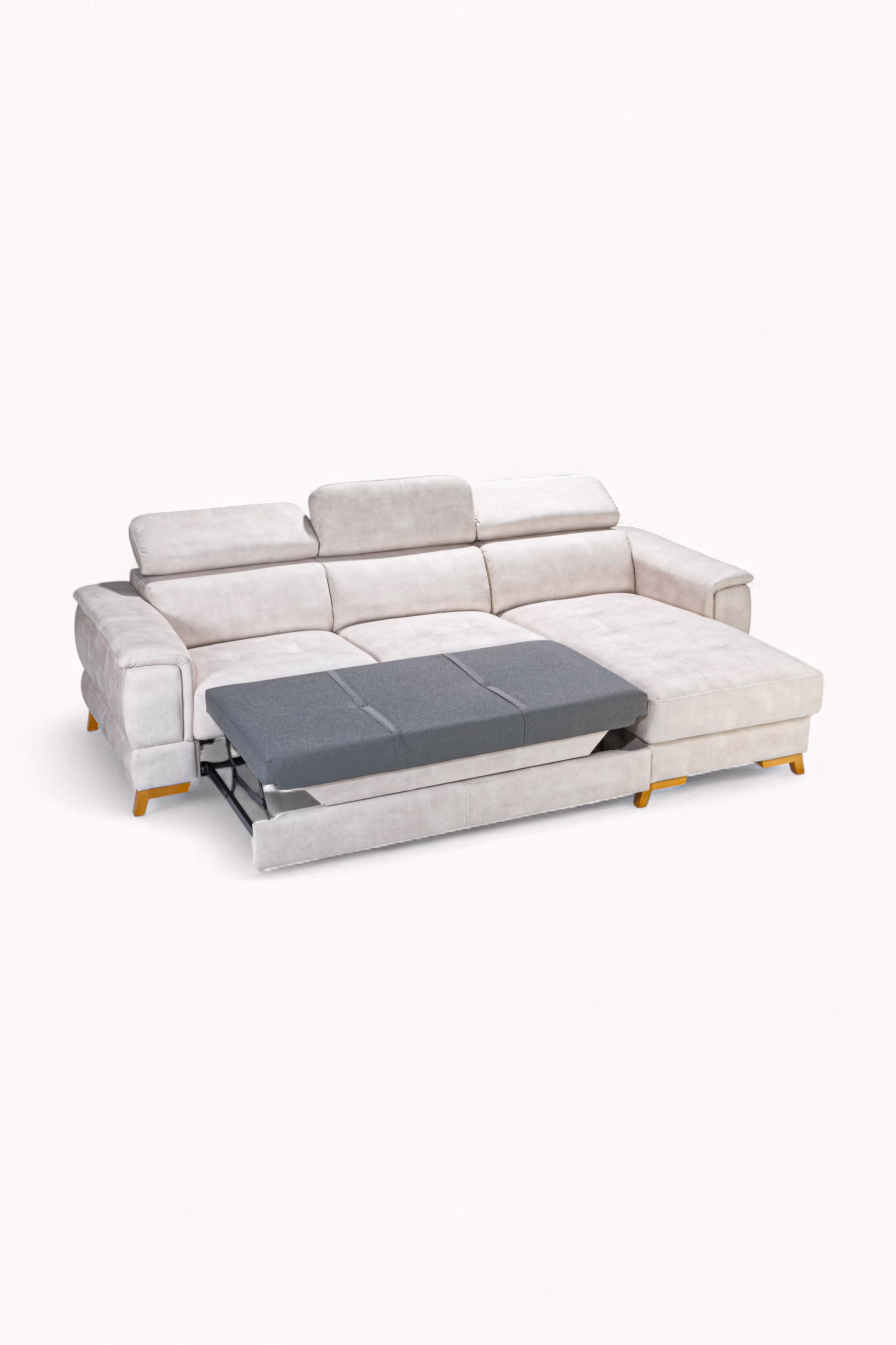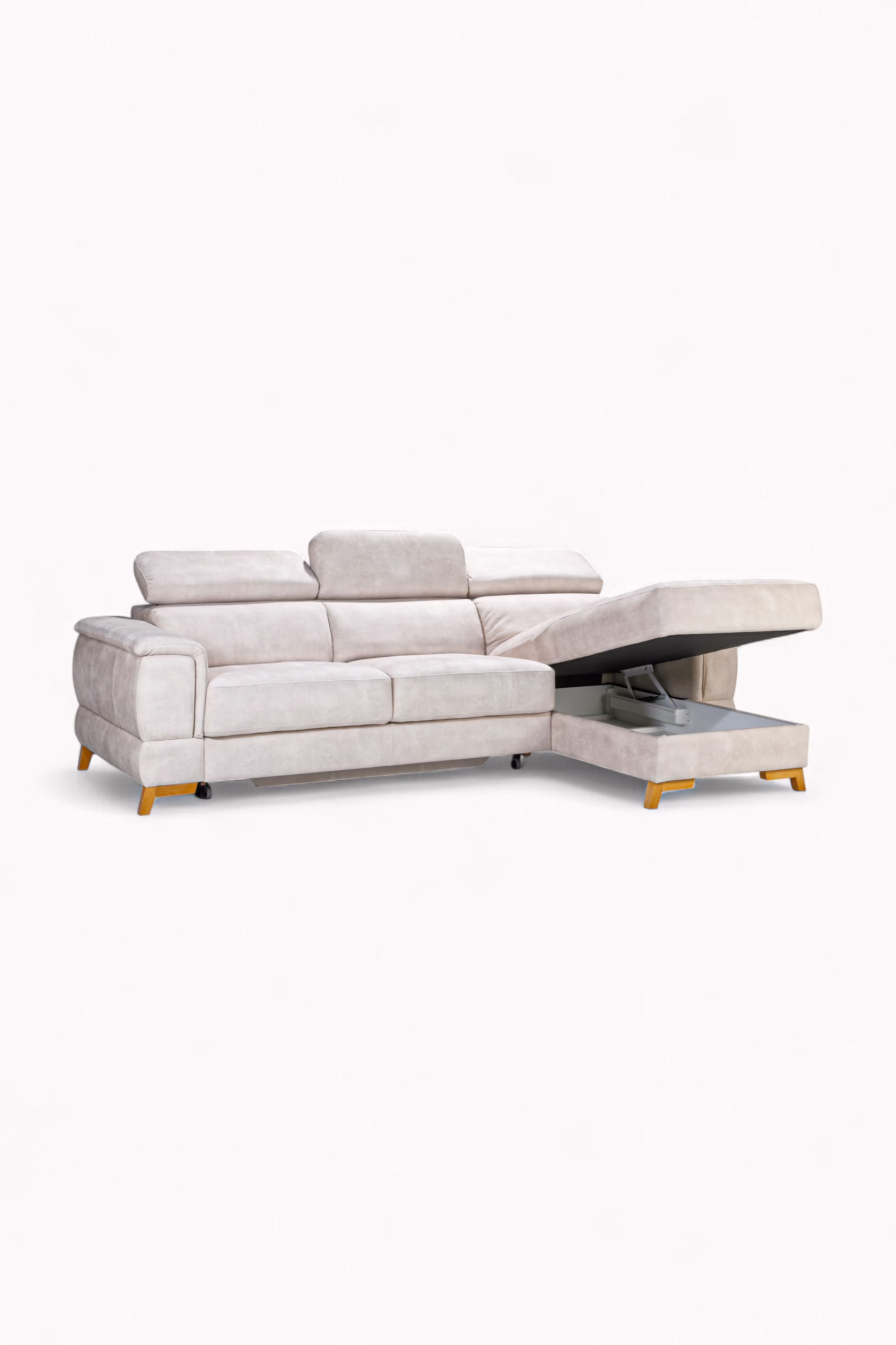 Geometryczna bryła, cienkie boczki i lekko uniesione nóżki nadają tej sofie wizualnej lekkości i elegancji. To design, który łączy współczesny minimalizm z funkcjonalnością – doskonale odnajduje się zarówno w nowoczesnych przestrzeniach, jak i tych bardziej klasycznych.