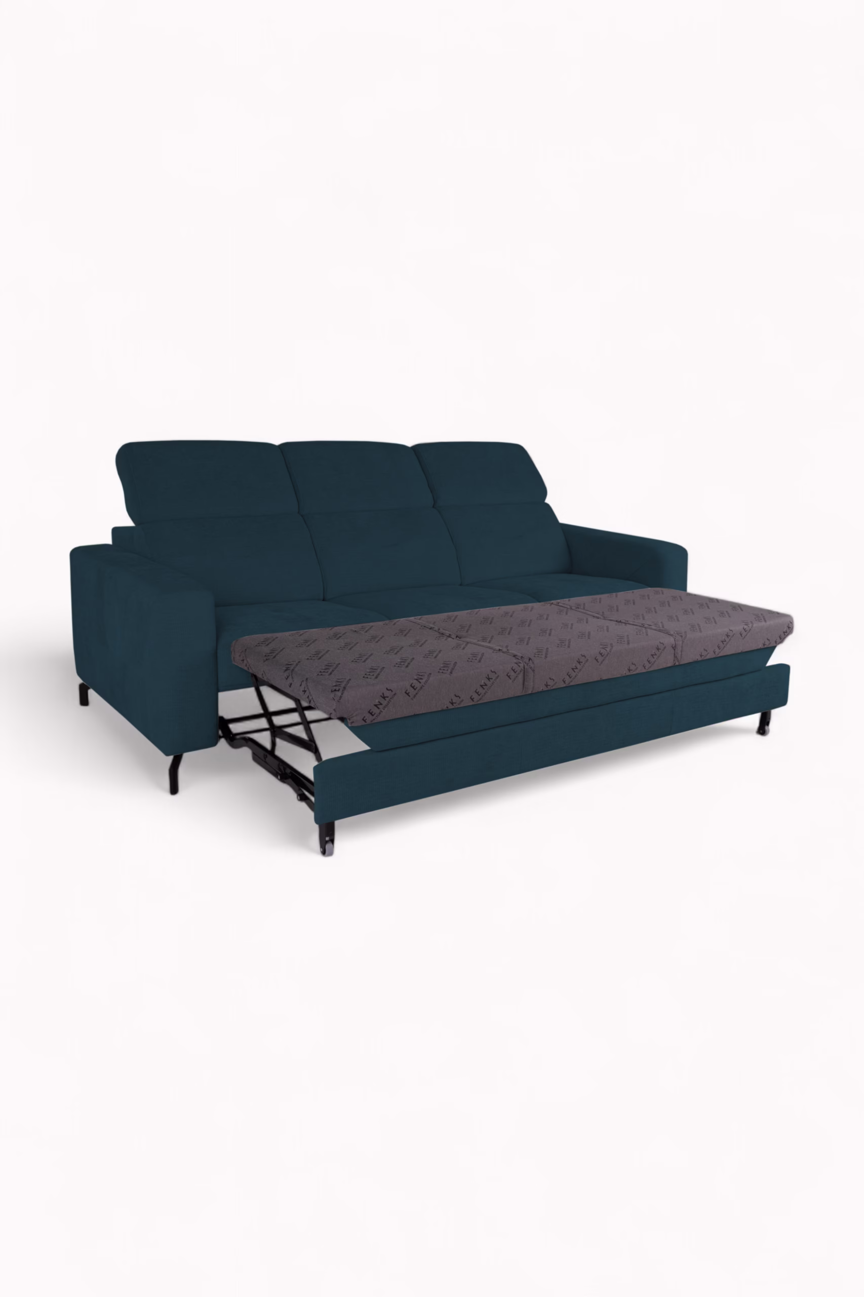 • Funkcja spania typu Delfin – w kilka sekund zmienisz sofę w wygodne łóżko. Mechanizm działa lekko i intuicyjnie, a powierzchnia spania została wykończona tkaniną z logiem producenta – gwarancja jakości i elegancji.