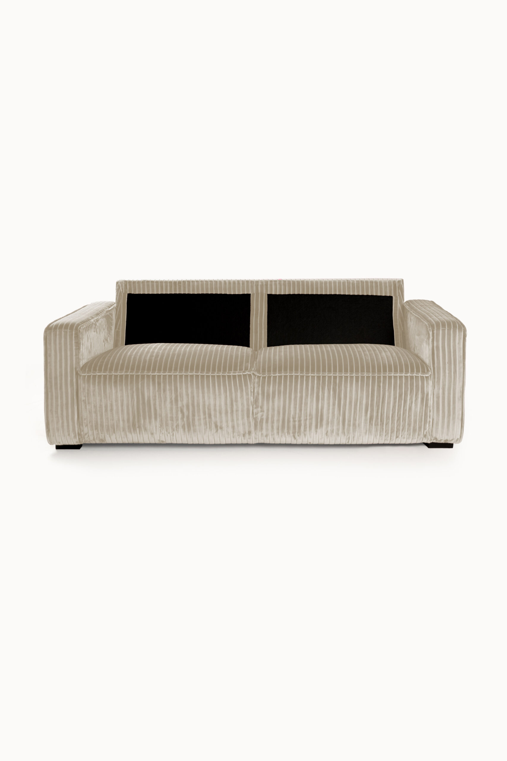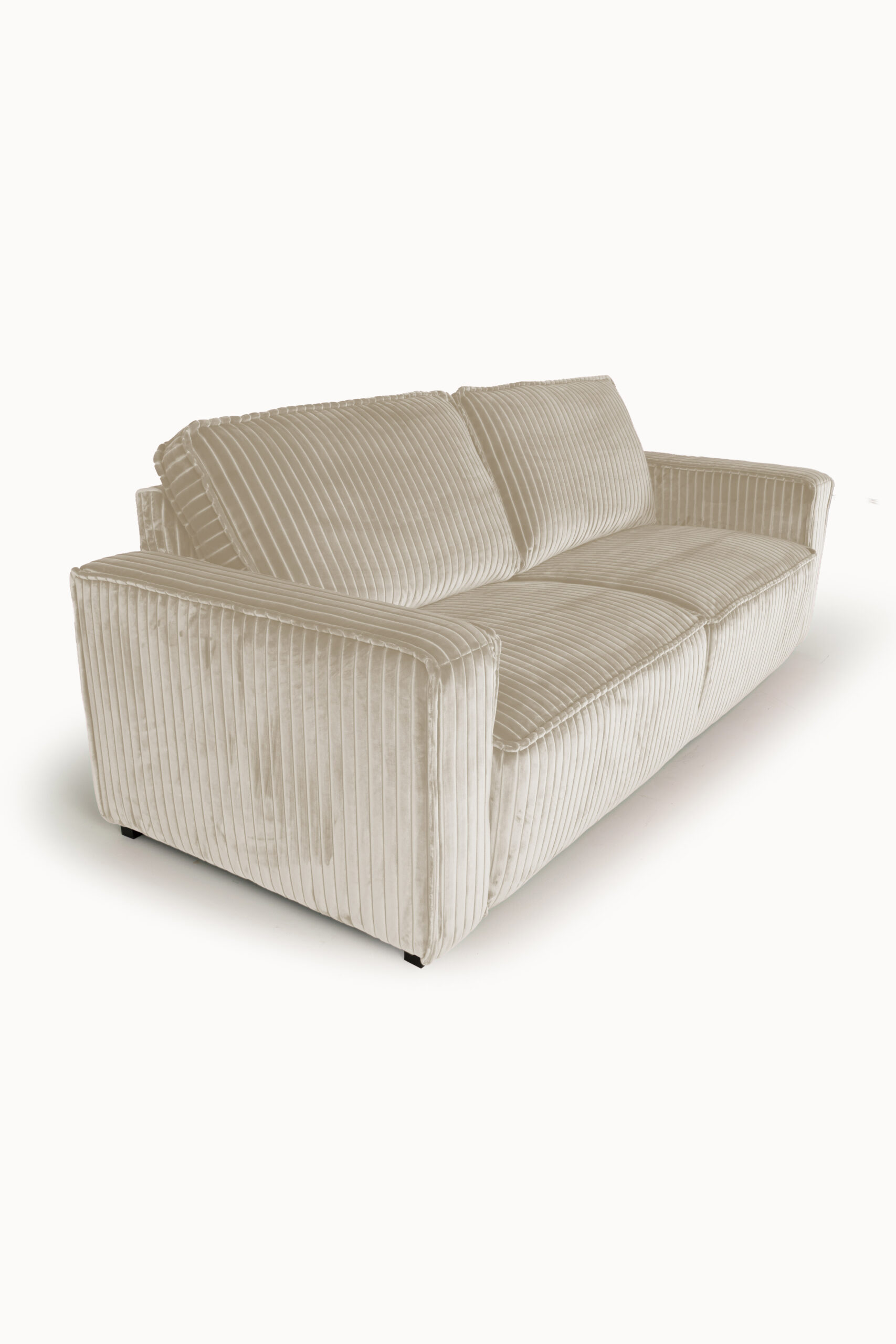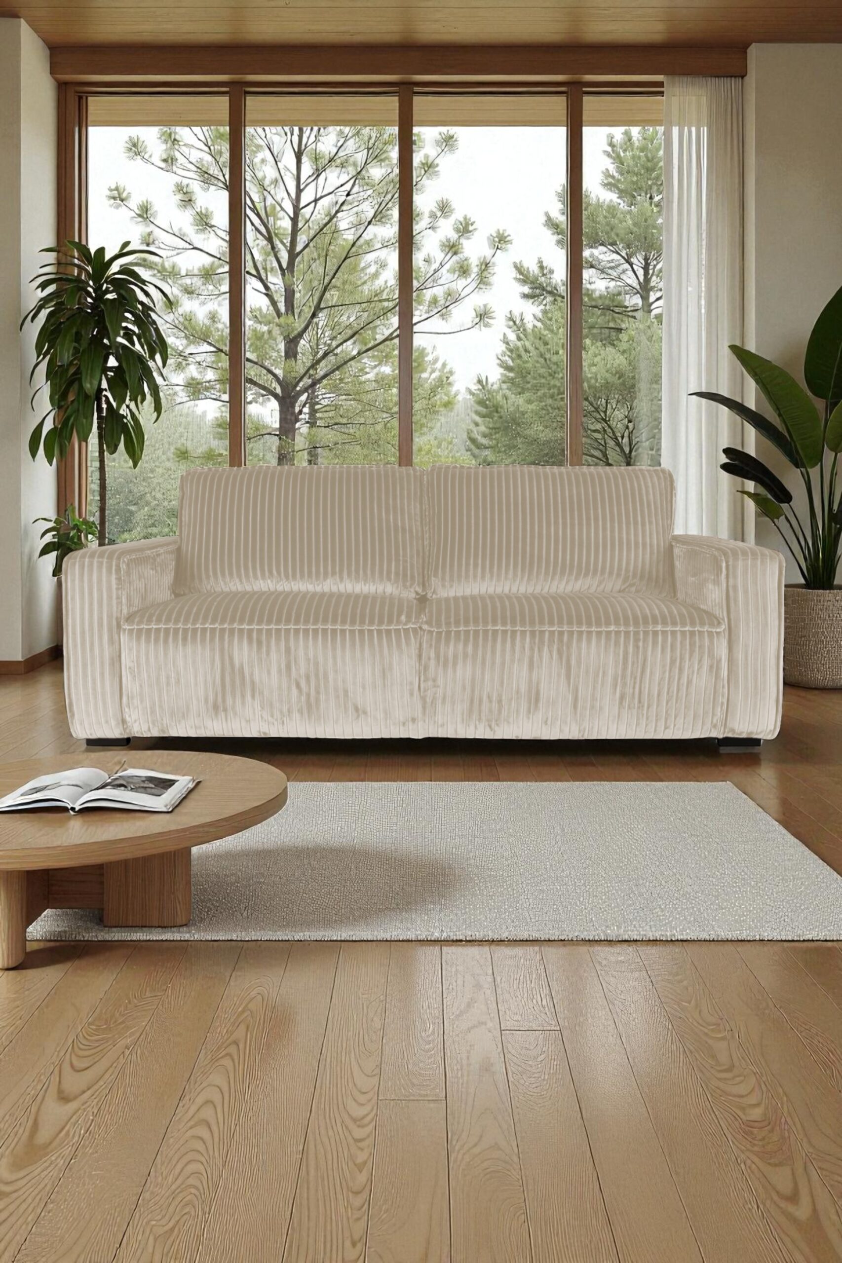 Jej niska bryła, szerokie podłokietniki i masywne siedzisko tworzą solidną, zapraszającą formę, którą dopełniają miękkie poduszki. Tkanina CORDIAL od Fibreguard dodaje sofie elegancji i ponadczasowej uniwersalności – subtelny sztruks najwyższej jakości pięknie podkreśla formę mebla i ociepla wnętrze. Santino to połączenie prostoty, wygody i trwałego stylu – idealne do przestrzeni, w których liczy się design, komfort i niezawodność na lata.