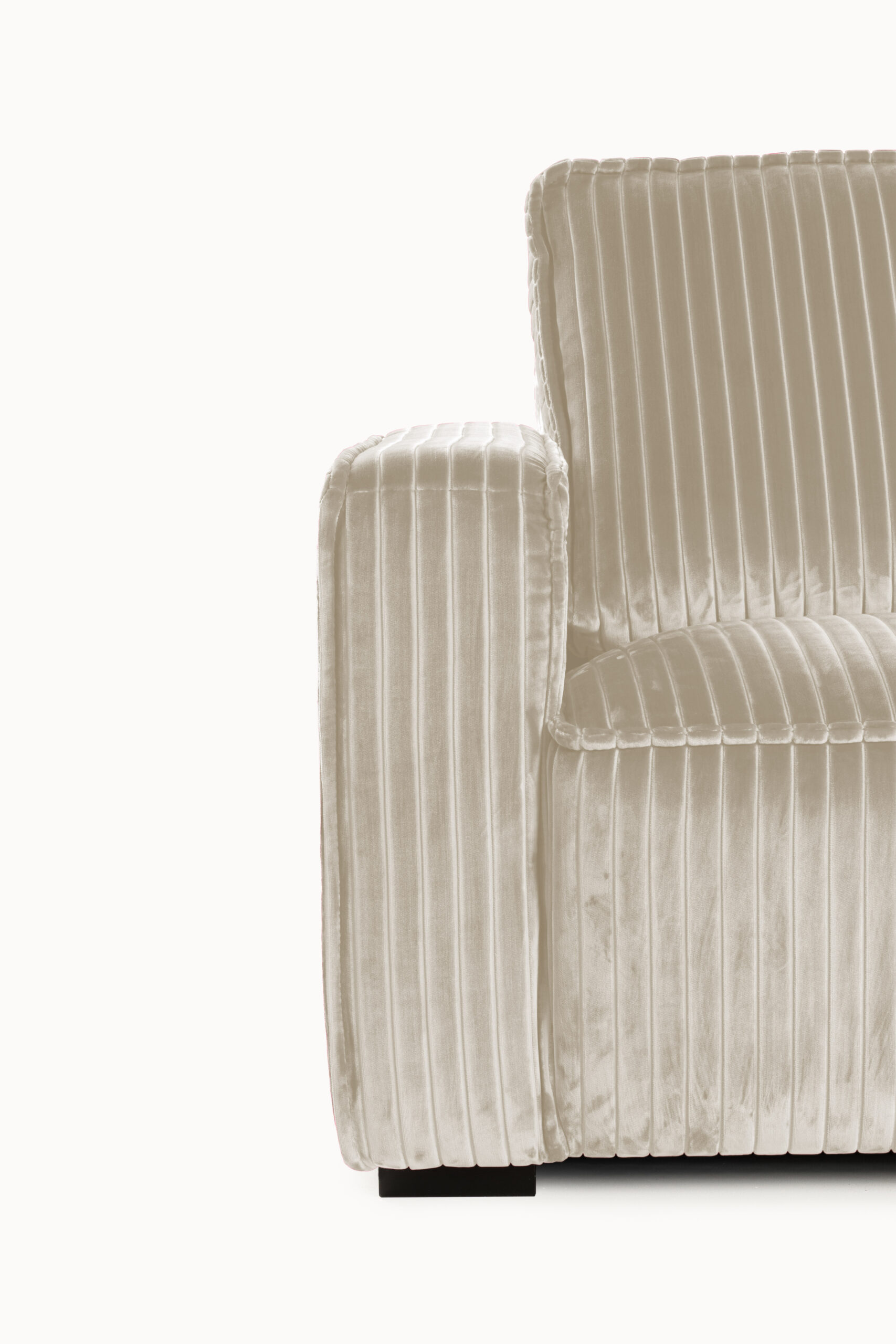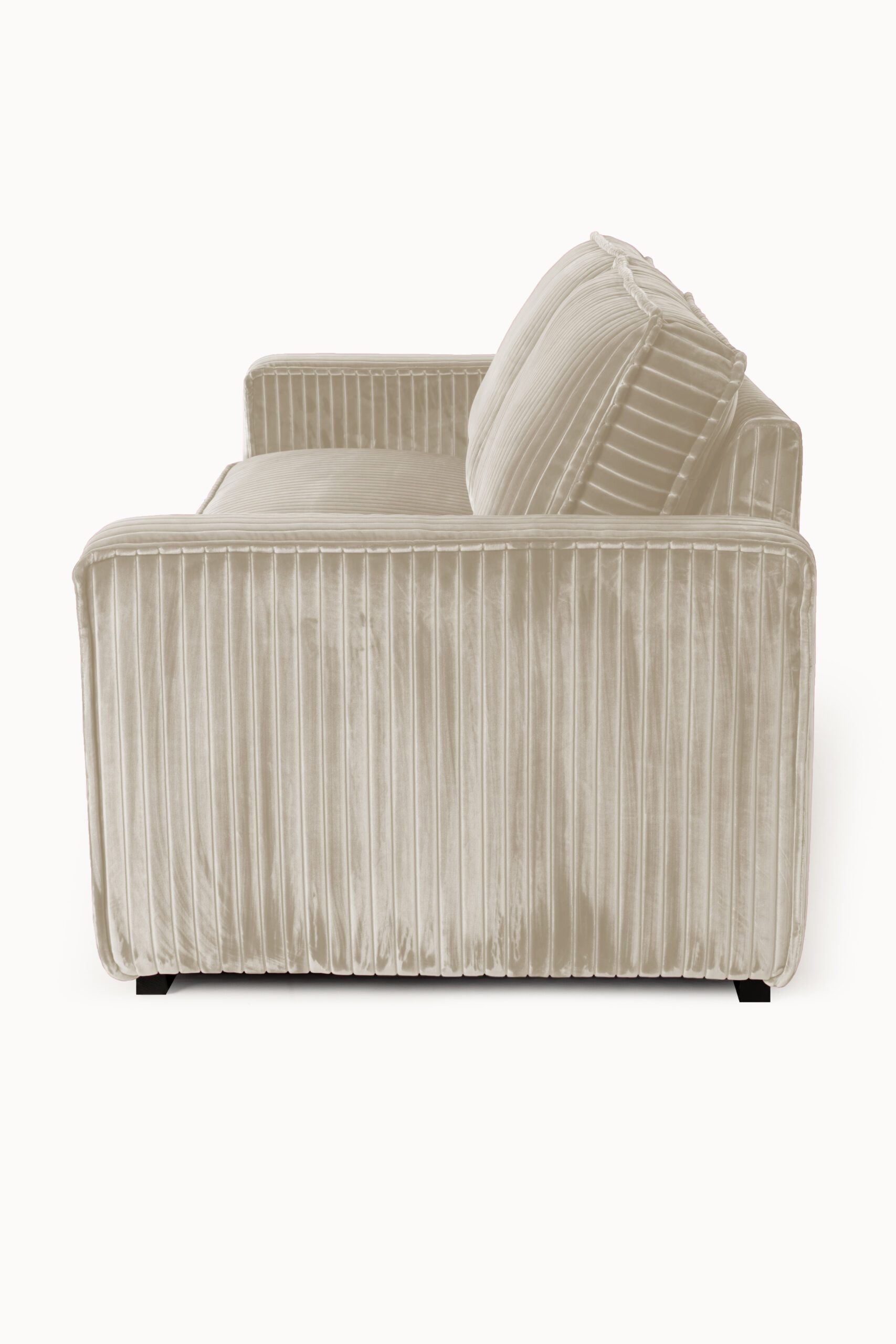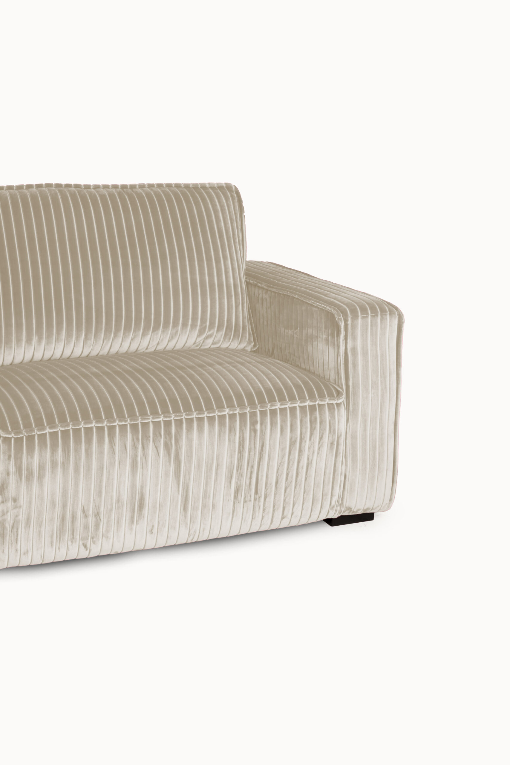 Jej niska bryła, szerokie podłokietniki i masywne siedzisko tworzą solidną, zapraszającą formę, którą dopełniają miękkie poduszki. Tkanina CORDIAL od Fibreguard dodaje sofie elegancji i ponadczasowej uniwersalności – subtelny sztruks najwyższej jakości pięknie podkreśla formę mebla i ociepla wnętrze. Santino to połączenie prostoty, wygody i trwałego stylu – idealne do przestrzeni, w których liczy się design, komfort i niezawodność na lata.
