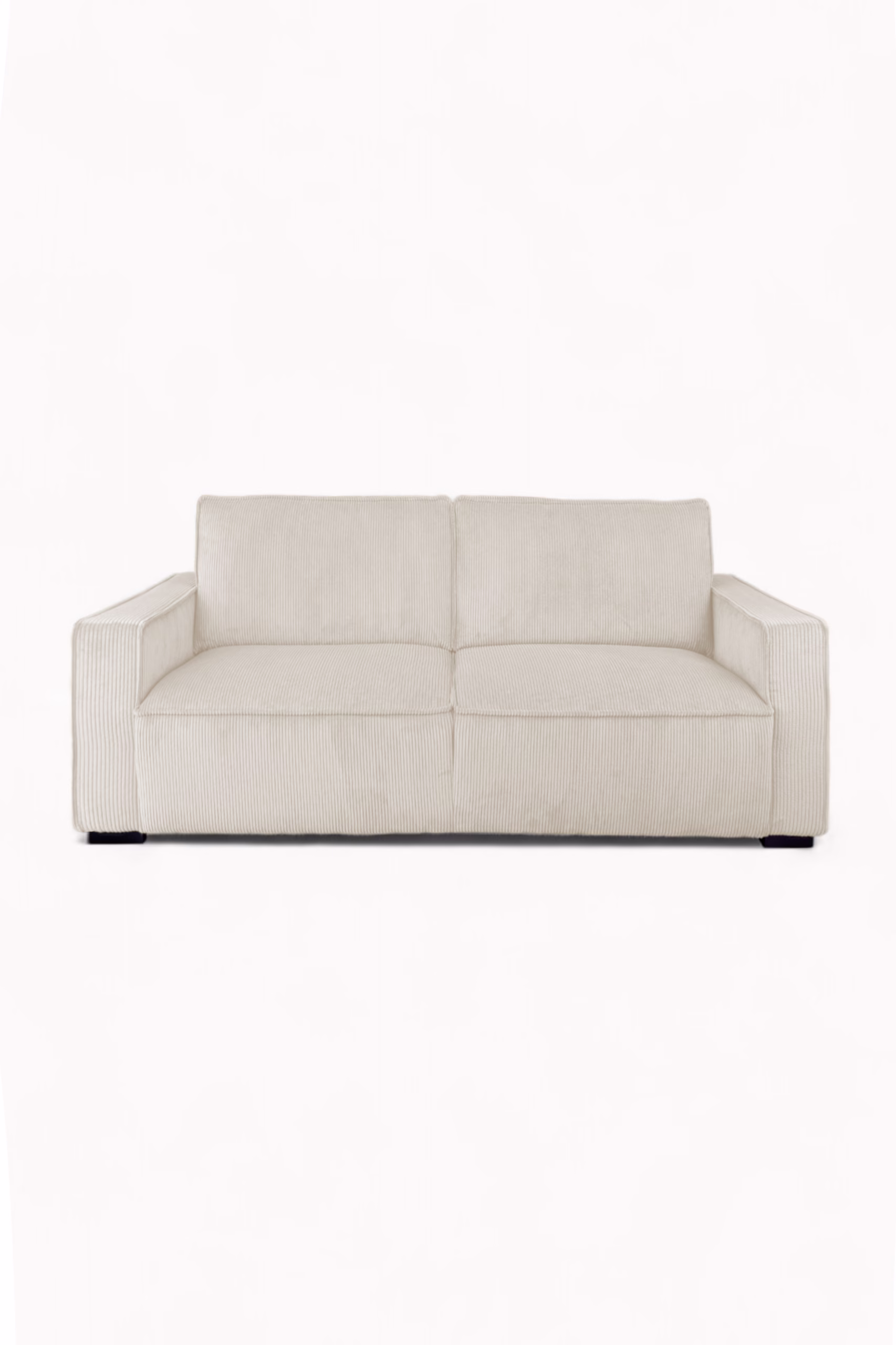 Santino – minimalistyczna, ale pełna charakteru. Jej niska bryła, szerokie podłokietniki i masywne siedzisko tworzą solidną, zapraszającą formę, którą dopełniają miękkie poduszki. Sztruksowa tkanina POSO od LECH Fabrics nadaje całości wyjątkowej głębi i przytulności, sprawiając, że sofa zmienia swój charakter wraz ze światłem dnia. Santino to połączenie prostoty, wygody i ponadczasowego stylu – idealne do wnętrz, w których liczy się design i komfort